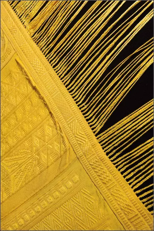 Šátek bude představen společně se zlatou kápí, která je momentálně na Madagaskaru. Oba kousky byly vyrobeny pomocí materiálu nasbíraného pavouky ‚sběrači‘ a dále zpracovaného odborně vyškolenými pracovníky. Nebojte se, k jejich týrání nedošlo. Pavouci v průběhu dne i celou noc po pracovním dni zaslouženě odpočívali.