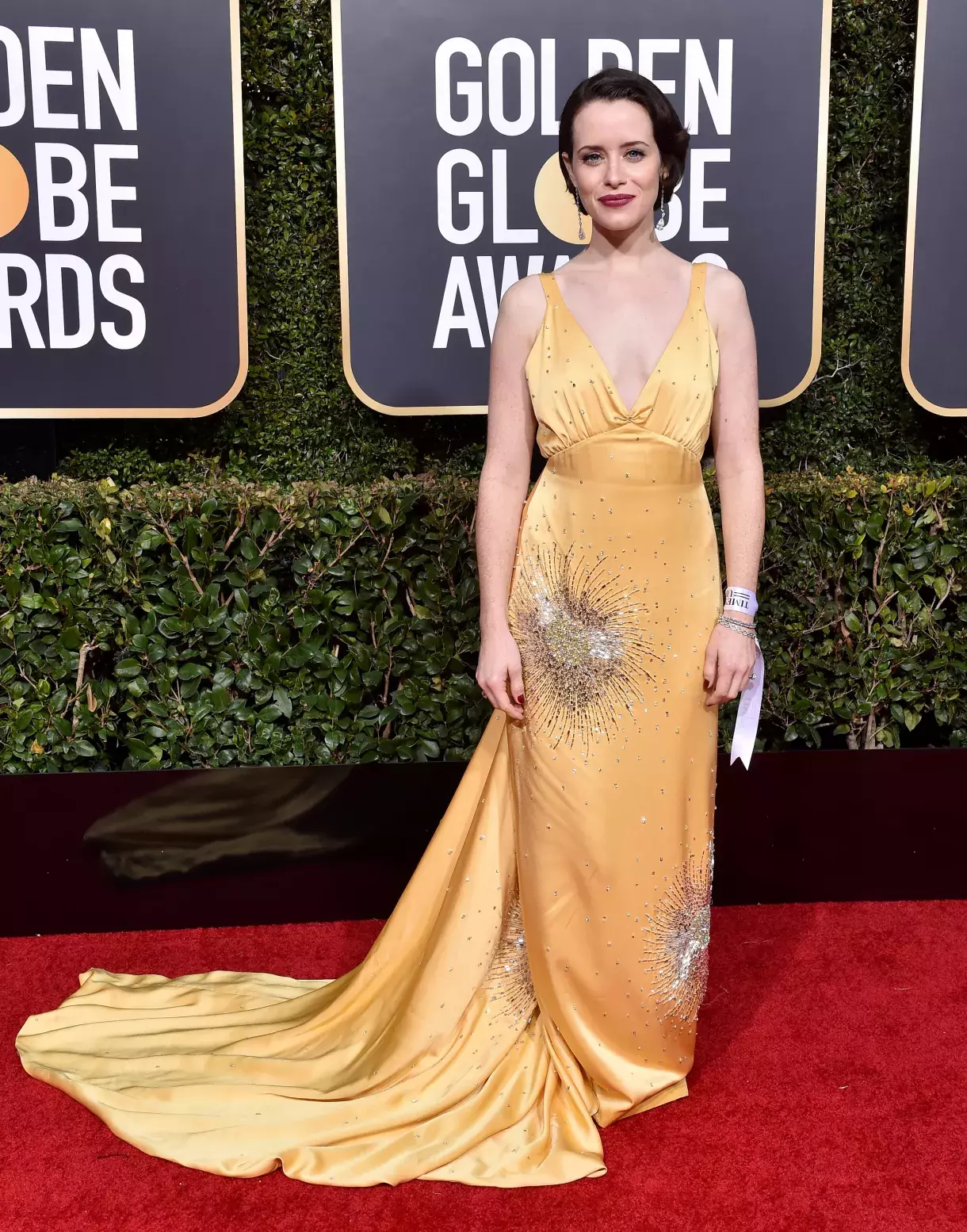 Claire Foy v šatech Miu Miu a špercích Lorraine Schwartz
