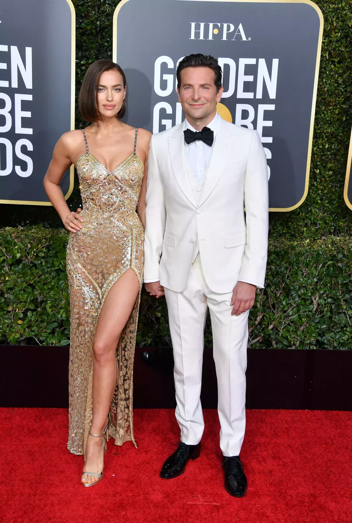Irina Shayk v šatech Versace a Bradley Cooper v modelu Gucci