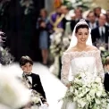 Originální šaty, které odpovídají originální svatbě. Julie (Keira Knightley) je ozdobila nádhernou čelenkou s peřím a my jen můžeme sborově zazpívat „All you need is love”.