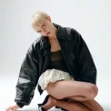 Bomber, ACNE STUDIOS; body, COMMANDO; šortky, JACQUEMUS; boty, THE ATTICO; silonky, WOLFORD.