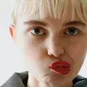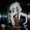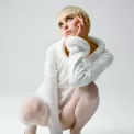 Pletené šaty, JW ANDERSON; boty, SAINT LAURENT; silonky, FALKE.
