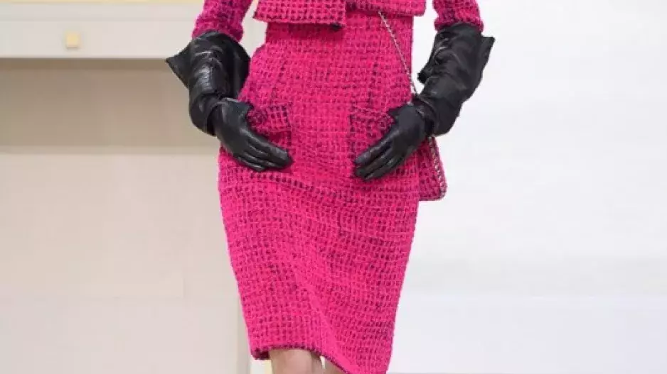 Tvídové kabátky sahají tentokrát nejen k linii pasu, ale volně padají až na boky. Mimořádně elegantně působí i zkrácené střihy vyvedené ve stejném odstínu šatů. Lemy sukní se prodlužují na úroveň lýtek a kotníků.