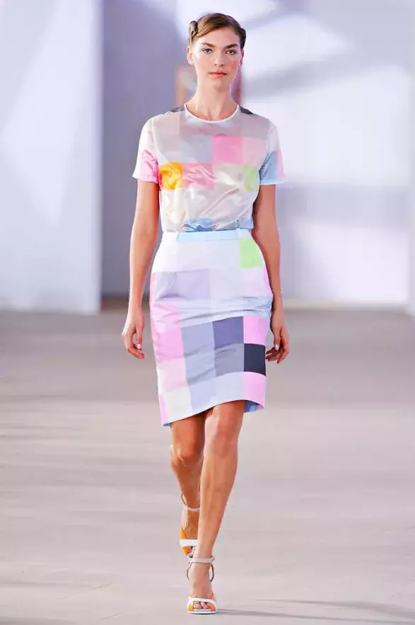 Co to znamenalo v praxi? Vše jednoduše ‚prosvištělo‘ softwarovým světem počítače. Na vysvětlení: dokonale hladký povrch materiálu s ‚printem‘ evokujícím pixely (nejmenší části, jež dohromady vytvářejí obraz počítačové grafiky) vypadal dříve jako romantický květovaný potisk. Digitální makeover mu změnil vzhled od základů. Nová kolekce je na první pohled nejvíce ženskou/dívčí sbírkou, jakou se doposud podařilo vytvořit. Svůj veliký podíl na tom mají použité tradiční ženské detaily: bílá krajka, volánky, lemování, límečky ve stylu Petra Pana, ale hlavně… barvy!