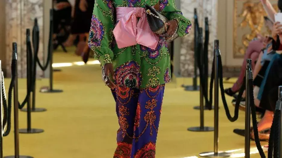 Nečekejte žádný minimalismus, Alessandro zůstává věrný své pověsti maximalisty do posledního detailu. Představil celkem 115 looků. Ultra barevný mix všech možných vzorů, opulentních brokátů v sytých tónech evokující vzácné drahokamy, s dekadentními křišťály, perlami všech myslitelných velikostí a gejzírem růžové, nejzásadnější barvou celé jeho tvorby. Jestli jste ještě pořád nepropadli logománii, flitrovaným hadům na džínách i kabelkách, obrovským brýlím, kočičím hlavám na květovaných šatech a barevným pantoflím, teď máte další příležitost.