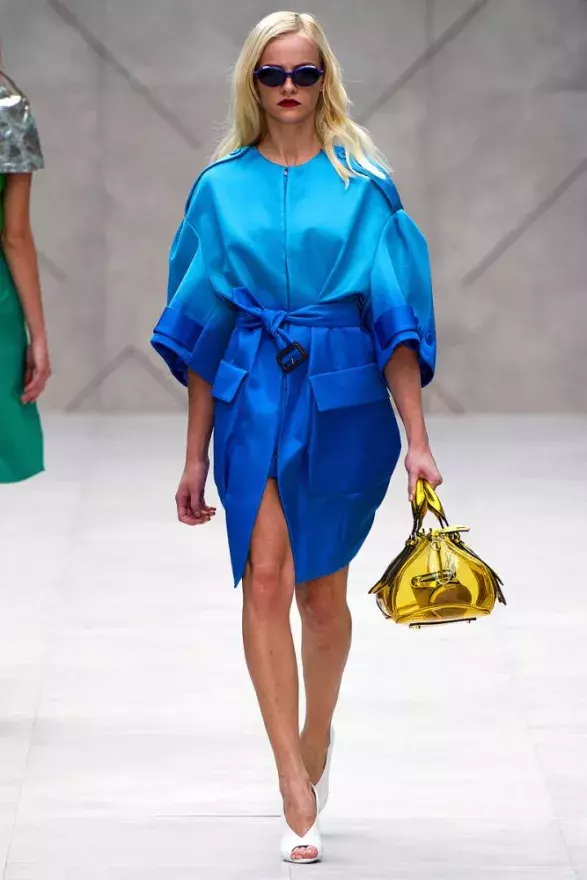 Kreativní ředitel značky Burberry neopomněl (jak je pro britský módní dům tradicí) vystavět celou kolekci na variacích trenčkotů. Ač klasicky podzimní a jarní artikl, útlé kabátky sešité z jemných kusů hedvábí působily odlehčeně a svěže. Bailey si také pohrál s objemem. Zatímco většina modelů byla střižená přesně na tělo, jiné disponovaly naddimenzovanou linií.