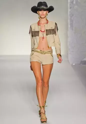 Během fashoin weeků už jsme se stihli podívat do Afriky, vesmíru i vily Velkého Gatsbyho. Rosella Jardini nás pro změnu vzala do Španělska na pravé býčízápasy. Toreadorská inspirace však kolem této kolekce nechodí jako okolo horké kaše - je naprosto evidentní. Modelky se procházely po mole v tradičních čepicích zápasníků a vyšívaných bundách, jiné měly šaty s volány a ve vlasech květiny jaké nosily španělské krásky. Tenhle teplý kraj ale nebyl jediným, který Rosellu inspiroval. I symboly divokého západu jako kovbojské klobouky a indiánské třásně se tu razantně hlásily o slovo. Nás ale bavily především kousky bližší dvacátému prvnímu století - krajkové mini šaty a party dress s flitry. Značka Moschino vsadila na kombinaci neutrální černé a bílé s výraznou žlutou. Za výšivky, které z většiny modelů dělají spíše kostýmy než normální oblečení, by nicméně zasloužila metál.