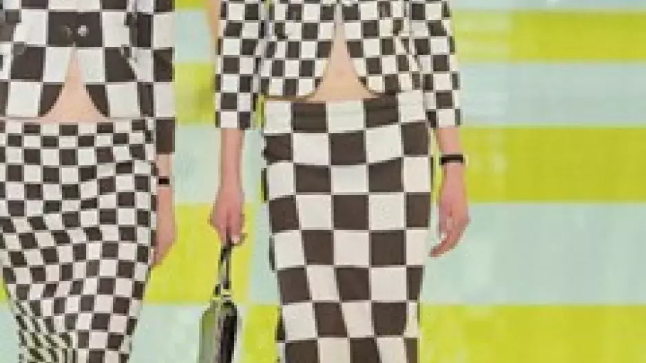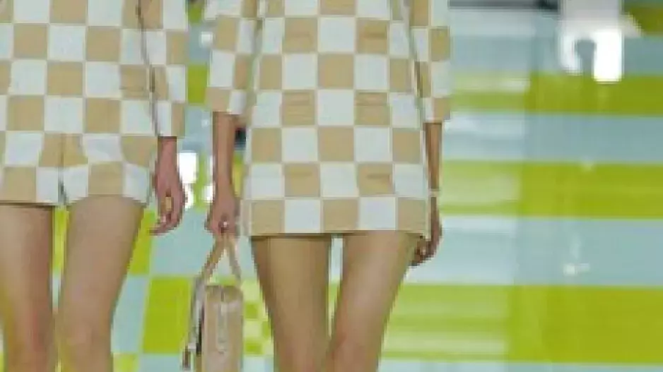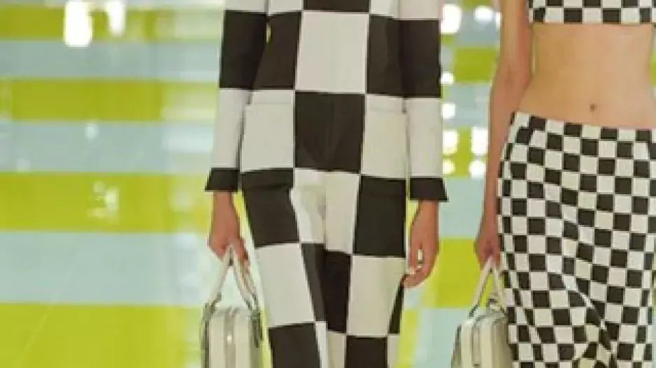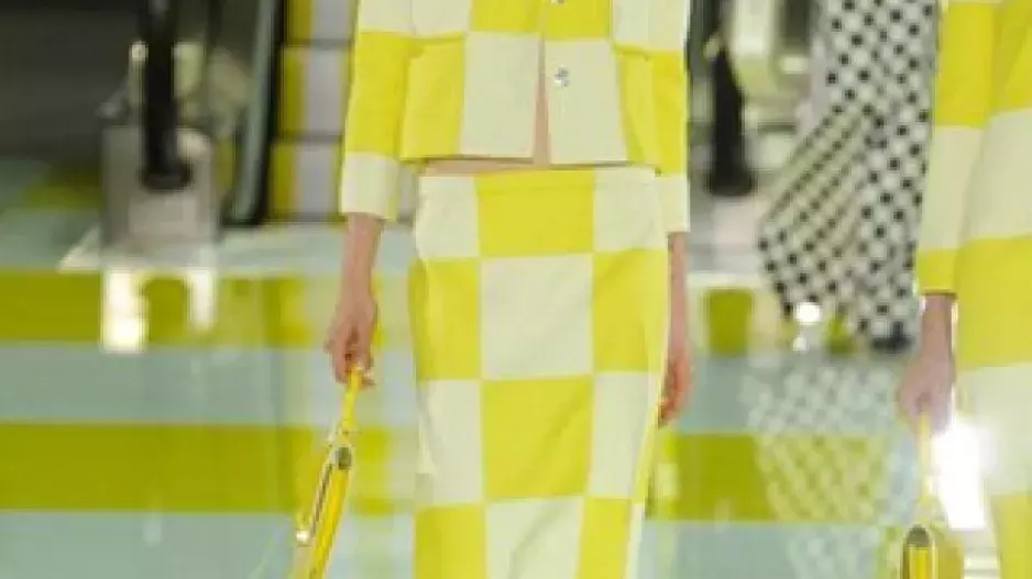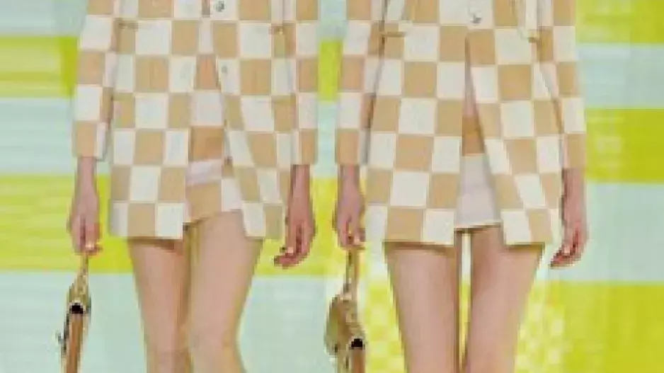 Před měsícem se do světa roznesla zpráva o tom, že zasvěcení netuší, jak budou modelky schopné odchodit přehlídku Louis Vuitton. Teď už je jasné proč: eskalátory. Kreativní ředitel francouzského módního domu Marc Jacobs po úžasné show s vlakem či točícím se karuselem nezůstal pozadu ani tento rok. Modelky nechal sjíždět ve dvojicích po žlutobílých jezdicích schodech a pak vedle sebe předvádět modely s často zrcadlovým motivem. A ten byl jasný: šachovnice. Žlutá, bílá, béžová, tmavě zelená, hnědá. Čtverce později vystřídal vzor květin. Materiály i střihy modelů byly různé – pencil sukně, maxišaty, krátká sáčka, úzké topy i široké kalhoty. Jednoduché, elegantní, a přitom výrazné a velmi dobře rozpoznatelné. To vše v rytmu konce šedesátých let, jak už jsme u Marca zvyklí. Tentokrát však poprvé nevyznělo jediné – slavný monogram značky. A kupodivu to vůbec nebylo na škodu.
