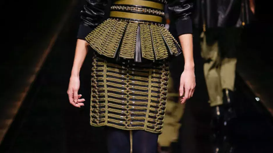 Šaty z dílny značky Balmain se úspěšně řadí mezi nejdražší modely světa v oblasti ready-to-wear a dle všeho se rozhodně nic nezmění ani letos na podzim. Mladý designér Olivier Rousteing v kolekci tematicky propojil dobrodružnou náladu safari s domorodými prvky a střihově uvolněným hip hop stylem. Na runway vyšel nespočet kožených bund, ty se kromě velikých a praktických kapes chlubily především khaki barvou. Za africké detaily mluvily zejména grafické vzory ve výrazných barvách, například na sukních z ručně splétané kůže. Dalším výrazným prvkem byly modely řešené anatomickým umístěním provazů do střihu nebo peplum sukně. Na své si přišli i milovníci kožešin a asymetricky řešených outfitů. Ramenní vycpávky jsou v kolekcích Balmain podmínkou. Nás nejvíc bavilo celokožené pojetí overalu.