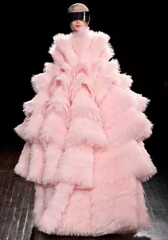 Náš dojem: Explozivní záplava okvětních lístků. Ženy jako květiny. Kaskády, volány, peří, navrstvený tyl… Sarah Burton vycházela z kořenů, které pevně zasadil její předchůdce, tragicky zesnulý Alexander McQueen. Pro něj byla hlavní inspirací matka příroda. Na rozdíl od svého bývalého šéfa Sarah neprozkoumává depresivní a temná zákoutí, ale oddává se světlu a zrození. Dramatičnost kolekce ale rozhodně nepozbyla na intenzitě.