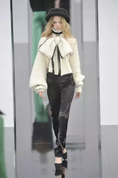 Modelky byly zahalené do kožešin i krajek a celá přehlídka se nesla v duchu výrazných prvků a bohatého zdobení, úspěch měly také pletené tuniky s výšivkami a vrstvené límce, kterým nesmí chybět brož s antickými motivy. Samozřejmě by to nebylo Rusko bez honosných kožešin, nebo alespoň bez kožešinového límce a bolera.