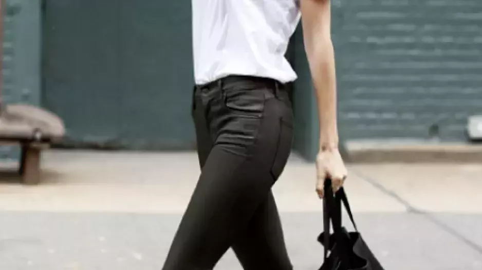 Zní to možná jako naprostá banalita, ale bílé tričko bez potisku je absolutní základ. Noste jej s džínami, koženou pouzdrovou sukní, overalem, pod sako, bomber nebo koženou bundu, nebo samostatně.