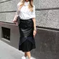 Ale trochu jinak, ať se vyhnete "sekretářskému" looku. Zvolte proto sukni z nějakého cool materiálu, třeba rovnou tu koženou. S bílou košilí vypadá prostě skvěle.