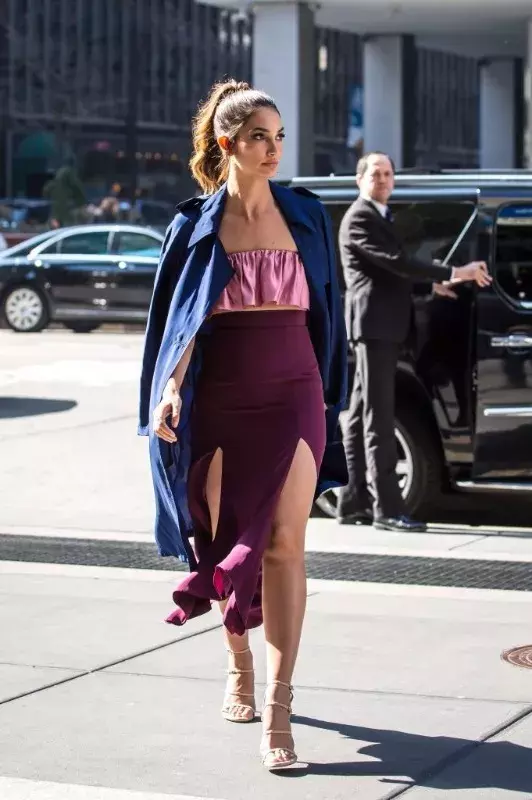 Máte metalické plavky? Bingo. Zkombinujte je se sukní v podobném odstínu, přehoďte lehký kabát a máte look hodný schůzek ve městě i večerní party s kamarádkou. Inspirujte se podle modelky Lily Aldridge.