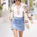 Alessandra Ambrosio vsadila na cardigan a džínovou sukni. Takhle klidně vyrazte na rodinný oběd či rande, jednoduché a sexy.
