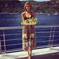 Karlie Kloss si vzala vršek od bikin, k tomu sukni do pasu s potiskem a vázací sandálky. Romantické i chic!