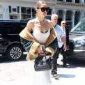 Hailey Baldwin dělá ramena i v kožené bundě.
