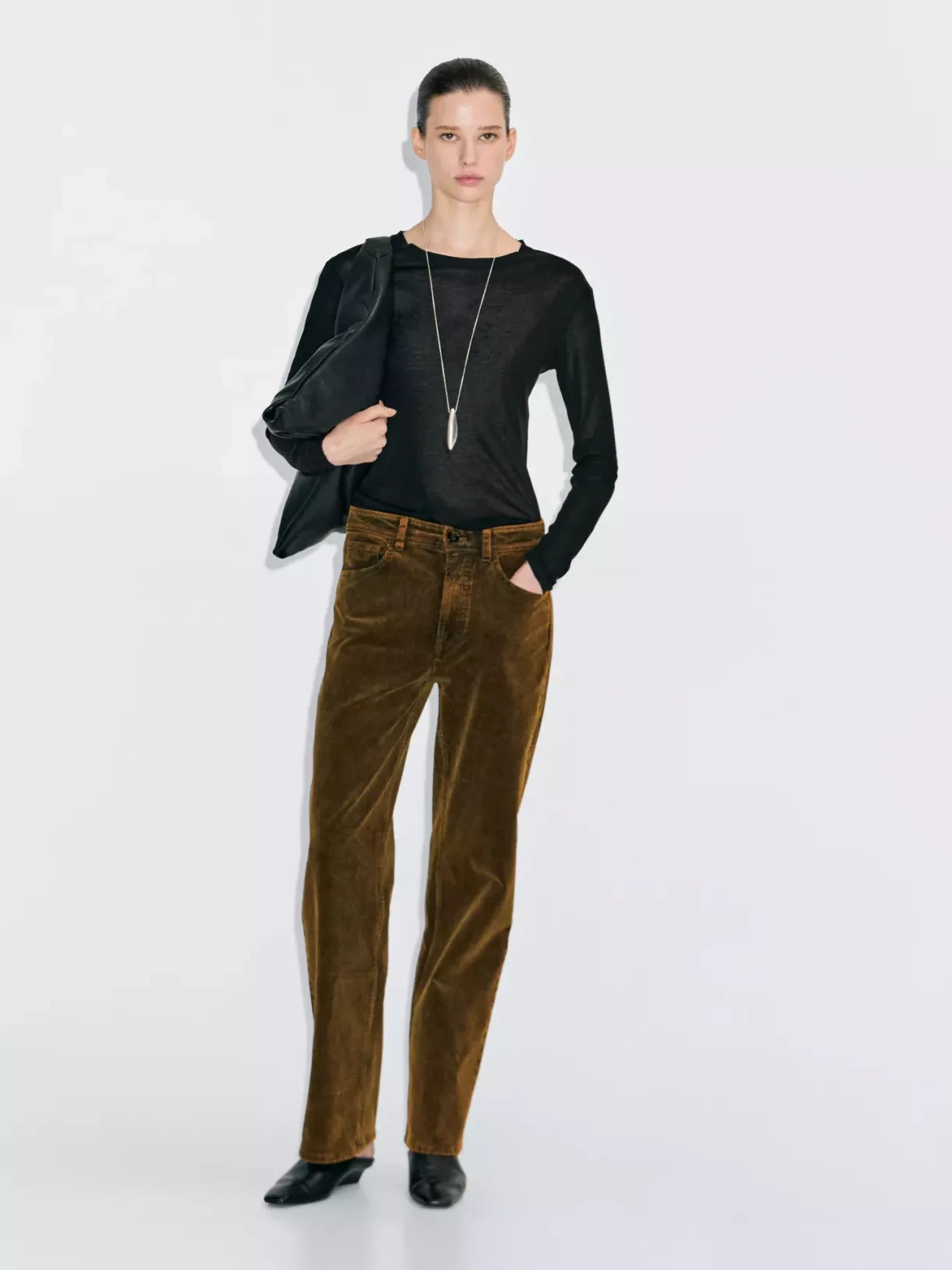 Hnědé manšestrové kalhoty, Massimo Dutti, 1 999 Kč