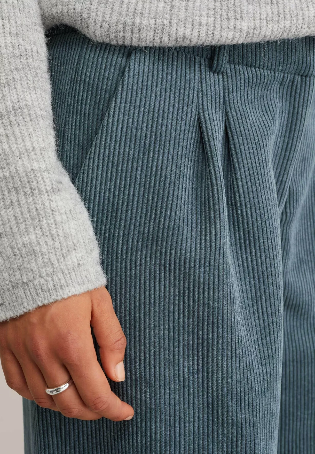 Modré manšestrové kalhoty, H&M, 2 500 Kč