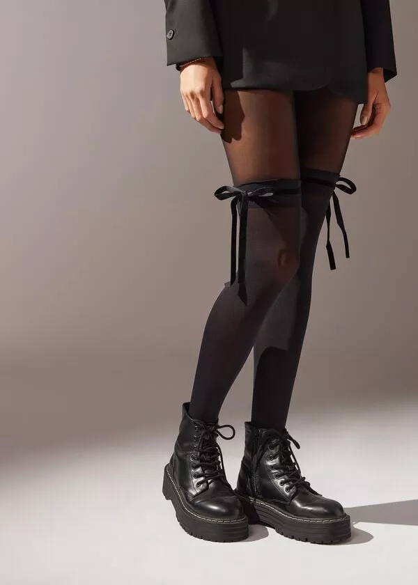 Punčocháče s efektem nadkolenek se sametovou stuhou, Calzedonia, 369 Kč