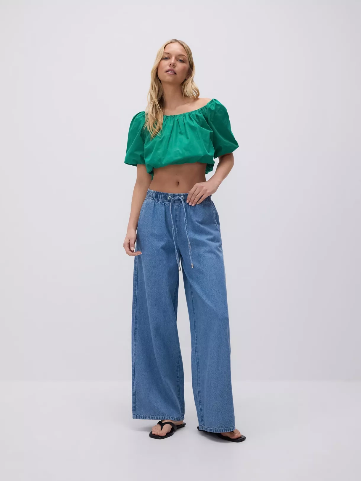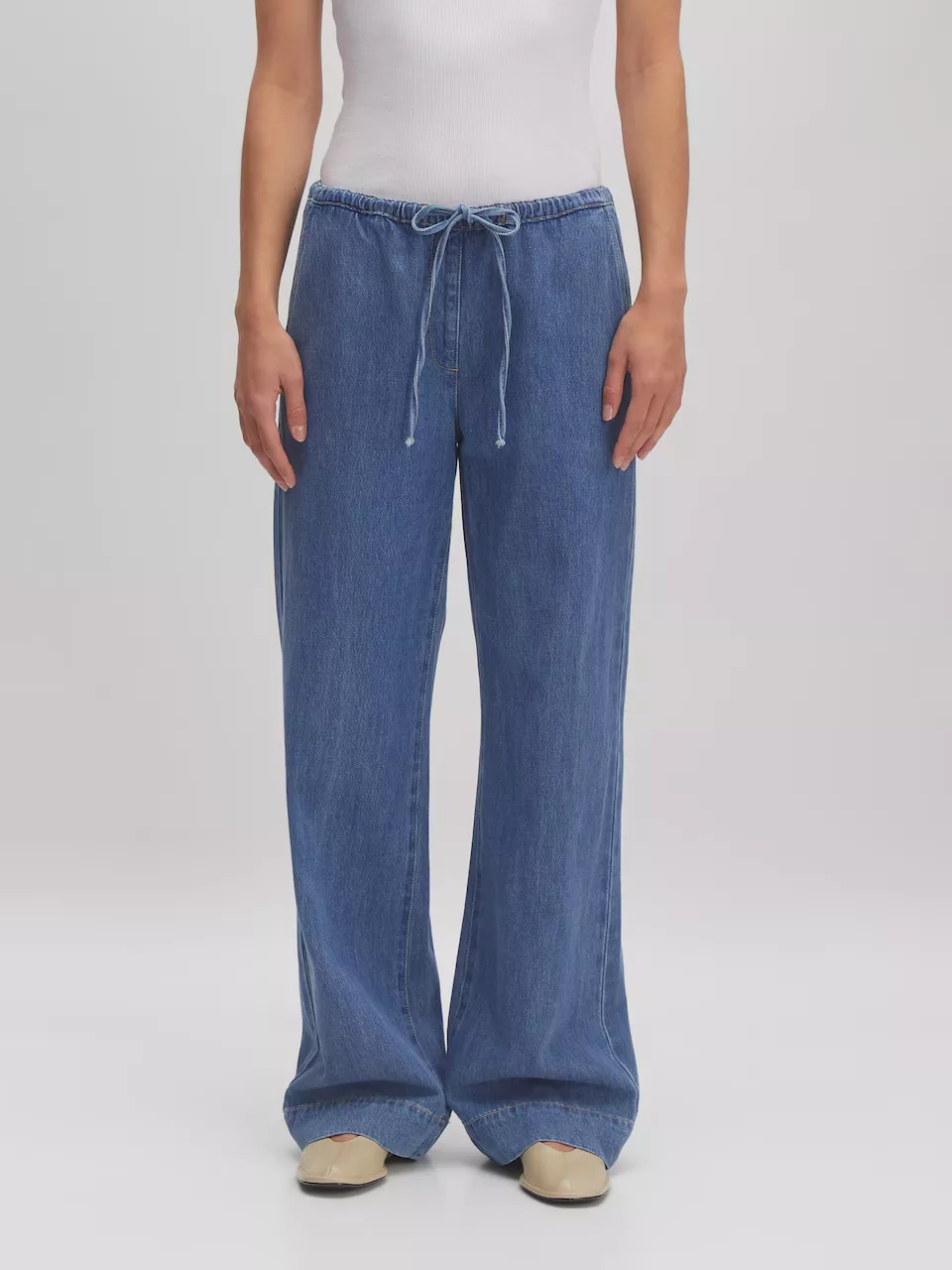 Džínové kalhoty se stahovací šňůrkou Feather Soft, H&M, 719 Kč