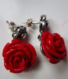 Zalíbil se nám model náušnic s motivem růževe vintage stylu. Za rudé zaplatíte 750 Kč, lososově růžová varianta je o něco dražší.
