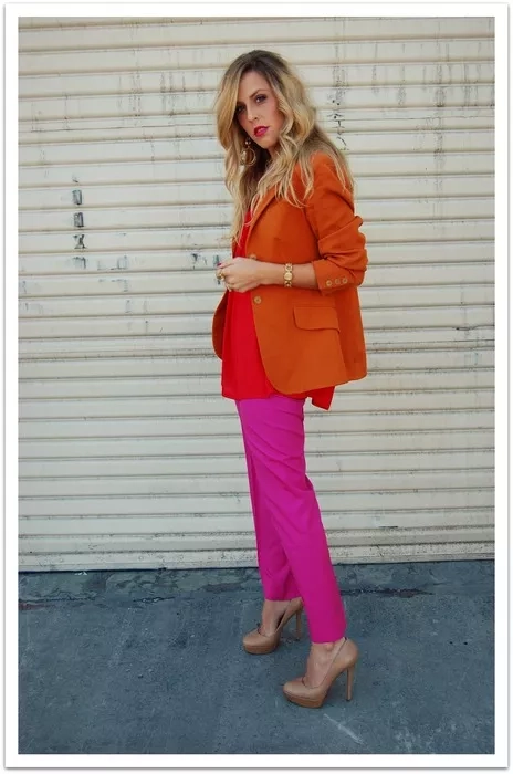 Zapomeňte na vzory. Každý separátní kus outfitu by měl mít pouze jeden výrazný barevný odstín. A ty pak mezi sebou kombinujte. Promýšlejte možnosti. Křiklavou škálu tónů můžete zjemnit pastely. Základ zneutralizovat bílou.