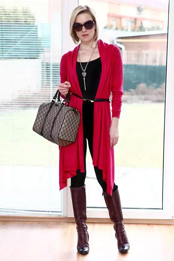 Petra Balvínová: Večer mám schůzku s klientem ohledně poradenství pro jeho firmu. K úzké sukni stačí Cozy uvázat jako bolerko. Zabere to trochu více času, ale nakonec je na světě. Stačí pouze pečlivě zamotat konce svetru za krk a tam malým uzlíkem uvázat.