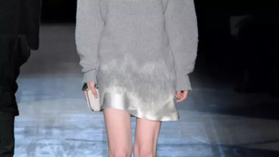 Průsvitné modely. Šaty i dlouhé sukně volají po těžkých oversize parkách.