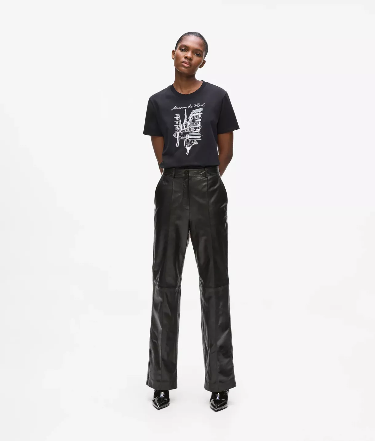 Černé kožené kalhoty, Karl Lagerfeld, 549 Eur