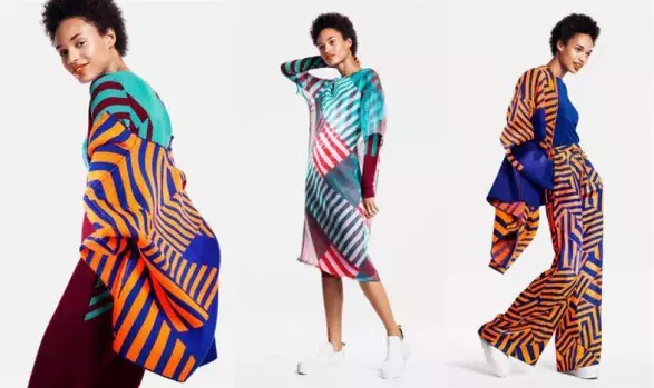 V kolekci najdete celkem pět modelů - šaty, kalhoty, tričko a bundu. Vše v zářivých odstínech oranžové, královské modré, tyrkysové, červené a vínové.