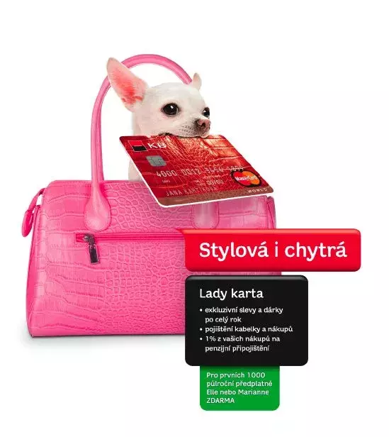 Pojištění kabelky, pojištění nákupu, prodloužení záruční lhůty, pojištění doručení nákupu na internetu. Prvních tisíc držitelek karty bude navíc dostávat po šest měsíců časopisy ELLE nebo Marianne zdarma. Stačí pouze poprvé použít kartu a zaplatit jí. Lady karta je pro vás připravena s úvěrovým limitem 10 až 250 tisíc a 1 % z každého vašeho nákupu navíc půjde chytře na váš účet penzijního připojištění u PF KB.
