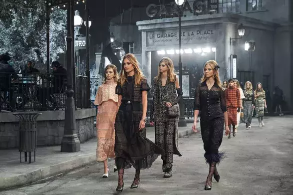 Chanel Tentokrát svou kolekci Métiers d’Art představil Karl Lagerfeld v Římě a byla plná do tmavých tónů zahalených modelů pro odvážnou a rebelující ženu. Je to úplně jasné, síťované punčochy jsou opět v kurzu!