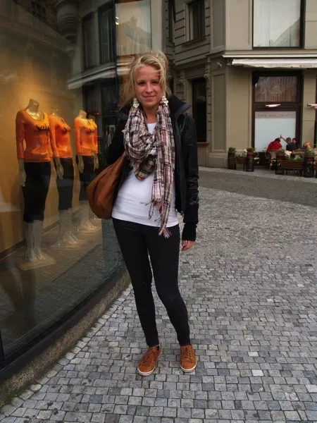 Omotaný šál kolem krku dodává styl. Chválím také náušnice z drobných mušliček. U mě moc dobrý, co na to vy?