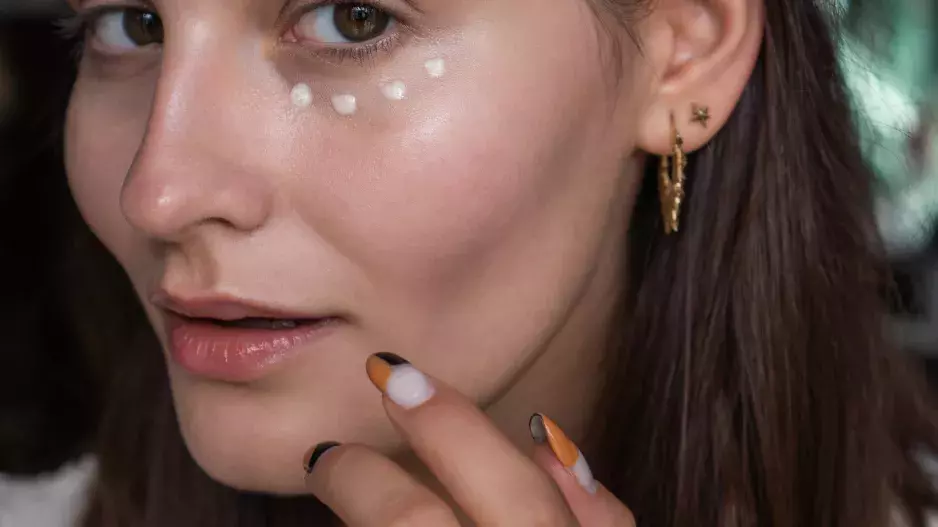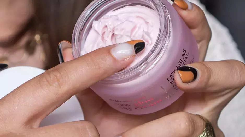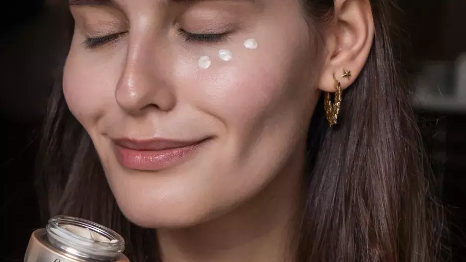 2. Dále použili pleťovým krém z řady Essentials s růží, který obsahuje i růžový pigment, takže podporuje rozjasnění pokožky. Pak nanesli oční krém značky Shiseido, který aplikovali jak v okolí očí i v rámci nadočnicového oblouku.