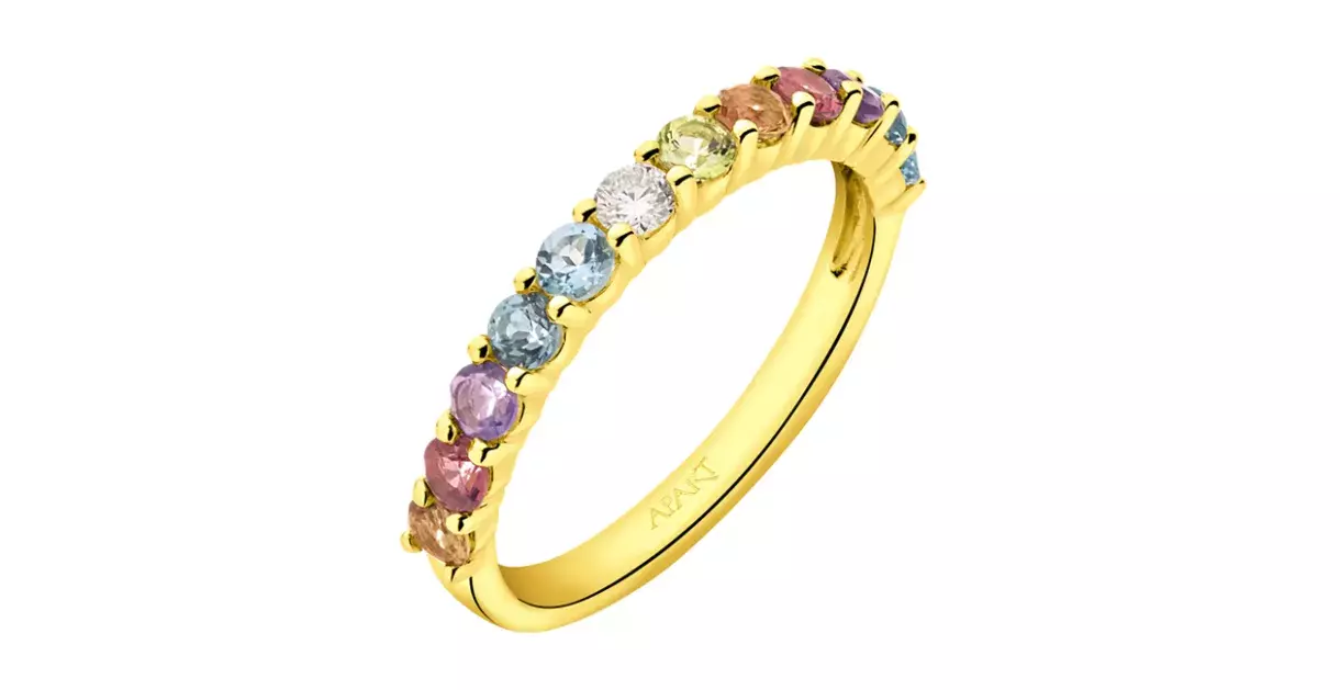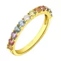 Prsten ze žlutého zlata s briliantem a drahokamy