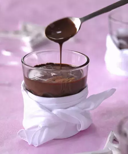 1. Čokoládu rozlámejte na malé kousky do skleněné mísy. Tu vložte do horké vodní lázně a čokoládu rozehřejte (jde to i v mikrovlnce). Použijte kvalitní čokoládu, nejlépe 70procentní, a rozlámejte ji opravdu nadrobno.