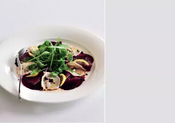 2. Zálivku smíchejte z uvedených ingrediencí. Řepu podávejte zakapanou zálivkou a obloženou sýrem a rukolou.