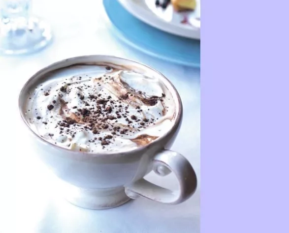 Horkou čokoládu rozlijte do hrnků, ozdobte šlehačkou a posypte kakaem nebo skořicí.