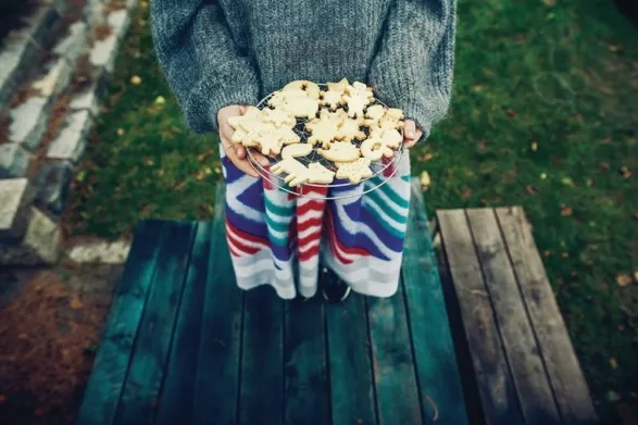 5. Předehřeju si troubu na 170 stupňů, připravím si plechy a vyložím je pečicím papírem. Vychlazené těsto vyndám z lednice, kousek odkrojím a zbytek uložím do lednice, aby zůstalo hezky pevné. Těsto si vyválím na lehce pomoučeném válu do tenka a vykrájím z něj sušenky, které pak kladu na připravený plech. Když mám plech plný, vložím ho do vyhřáté trouby a peču zhruba 8 minut. Sušenky jsou hotové, když mají lehce zlaté okraje.