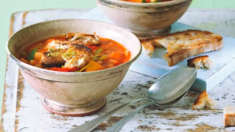 Recepty Redakce / Sdílet Recept na zimní minestrone s bylinkovými krutony Po vánočních hodech na to jděte zdravě a zlehka