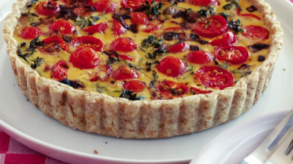 Recepty Redakce / Sdílet Koláč s cherry rajčátky, tymiánem a slaninou Tenhle pokrm vám chvilku zabere, ale časová investice se vám vrátí v podobě gurmánského zážitku.