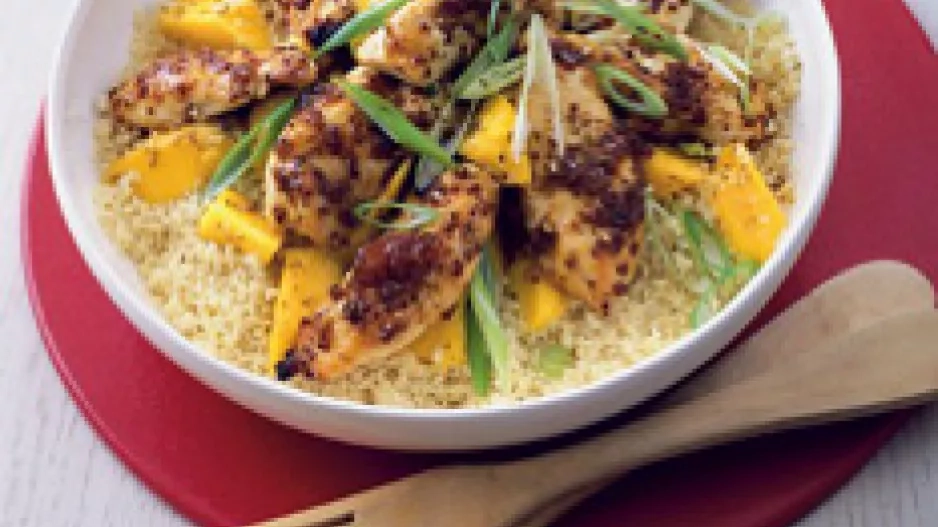 Recepty Redakce / Sdílet Kuře s mangovým kuskusem Zkuste obligátní broskev ke kuřeti vyměnit za mango a rýži za kuskus – kulinární zážitek zaručen!