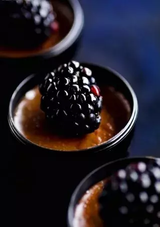– Nadýchaná pěna z hořké čokolády zdobená čerstvým ovocem
